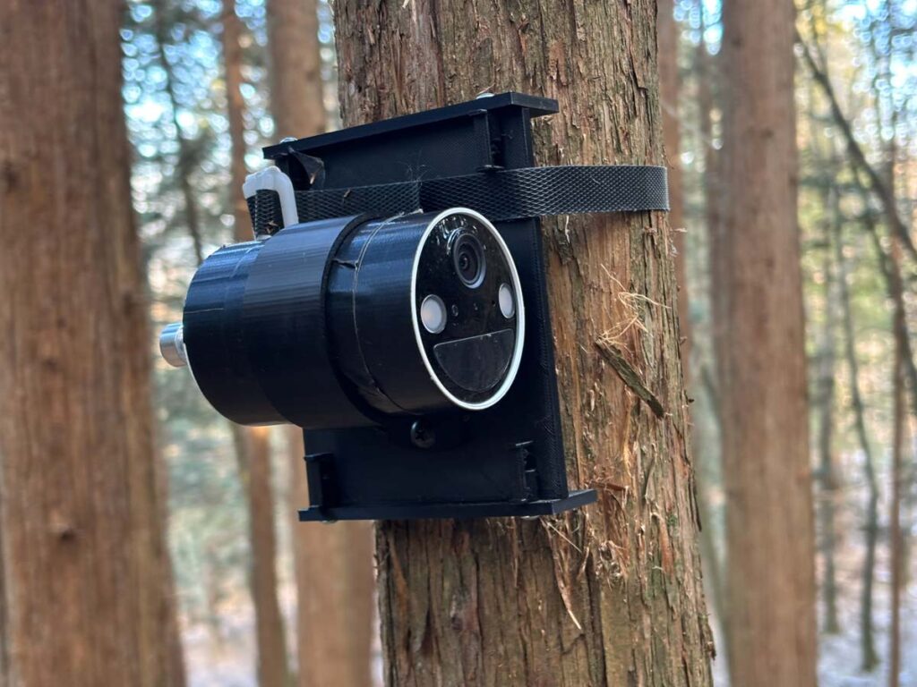 罠の監視に使っているTapo c410を木に固定する台は、3Dプリンターで作りました。